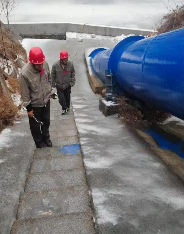 我公司巡檢員冒著嚴(yán)寒全副武裝,沿供水線仔細(xì)巡查管線損壞和防寒防凍情況,察看各路段是否受暴雪影響出現(xiàn)塌陷沉降等異常。途經(jīng)壓力管坡、閥門井、調(diào)壓池等供水建筑時,由于車輛無法靠近,巡檢員更需徒步上前,逐一檢查排氣、排水閥和檢修閥工作是否正常,是否漏水、井蓋井體是否完好,井內(nèi)是否有積水,查看調(diào)壓池內(nèi)水位是否正常。公司全體干部職工時刻保持如履薄冰的謹(jǐn)慎,在防范化解風(fēng)險上勇于擔(dān)責(zé)、善于履責(zé)、全力盡責(zé),以確保安全生產(chǎn)穩(wěn)定運行。