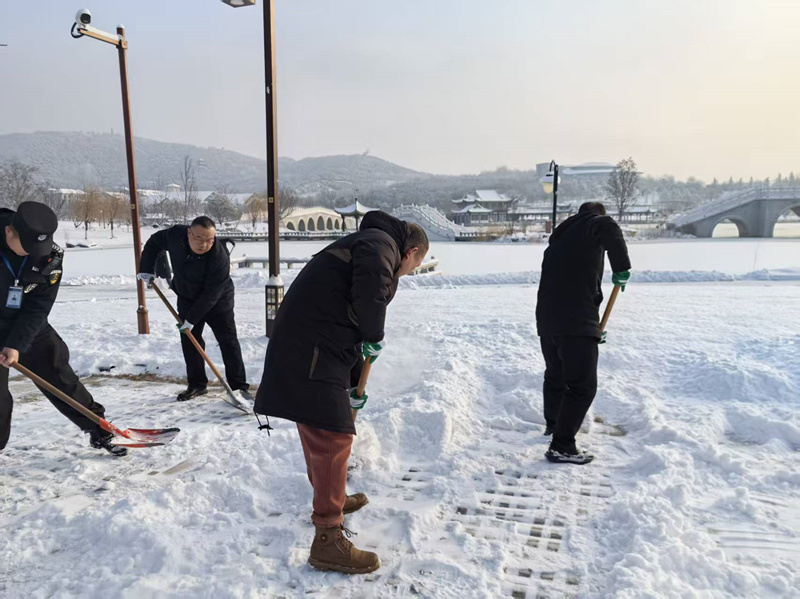 雪情就是命令,防控就是責任。我公司人員重點明確辦公區(qū)域、商務(wù)大廈院內(nèi)、機動車道等區(qū)域,干部職工們不畏嚴寒、腳踏積雪,手持鐵鍬、掃帚,分工協(xié)作、干勁十足,用實干詮釋了水務(wù)人的奉獻與擔當。