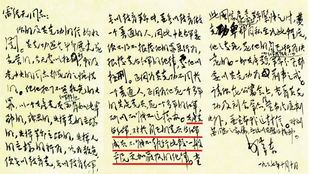 你的及黃克功的信均收閱。黃克功過去斗爭(zhēng)歷史是光榮的,今天處以極刑,我及黨中央的同志都是為之惋惜的。但他犯了不容赦免的大罪,以一個(gè)共產(chǎn)黨員紅軍干部而有如此卑鄙的,殘忍的,失掉黨的立場(chǎng)的,失掉革命立場(chǎng)的,失掉人的立場(chǎng)的行為,如為赦免,便無以教育黨,無以教育紅軍,無以教育革命者,并無以教育做一個(gè)普通的人,因此中央與軍委便不得不根據(jù)他的罪惡行為,根據(jù)黨與紅軍的紀(jì)律,處他以極刑。正因?yàn)辄S克功不同于一個(gè)普通人,正因?yàn)樗且粋€(gè)多年的共產(chǎn)黨員,是一個(gè)多年的紅軍,所以不能不這樣辦。共產(chǎn)黨與紅軍,對(duì)于自己的黨員與紅軍成員不能不執(zhí)行比較一般平民更加嚴(yán)格的紀(jì)律。當(dāng)此國家危急革命緊張之時(shí),黃克功卑鄙無恥殘忍自私至如此程度,他之處死,是他的自己行為決定的。一切共產(chǎn)黨員,一切紅軍指戰(zhàn)員,一切革命分子,都要以黃克功為前車之鑒。請(qǐng)你在公審大會(huì)上,當(dāng)著黃克功及到會(huì)群眾,除宣布法庭判決外,并宣布我這封信。對(duì)劉茜同志之家屬,應(yīng)給以安慰與撫恤。
